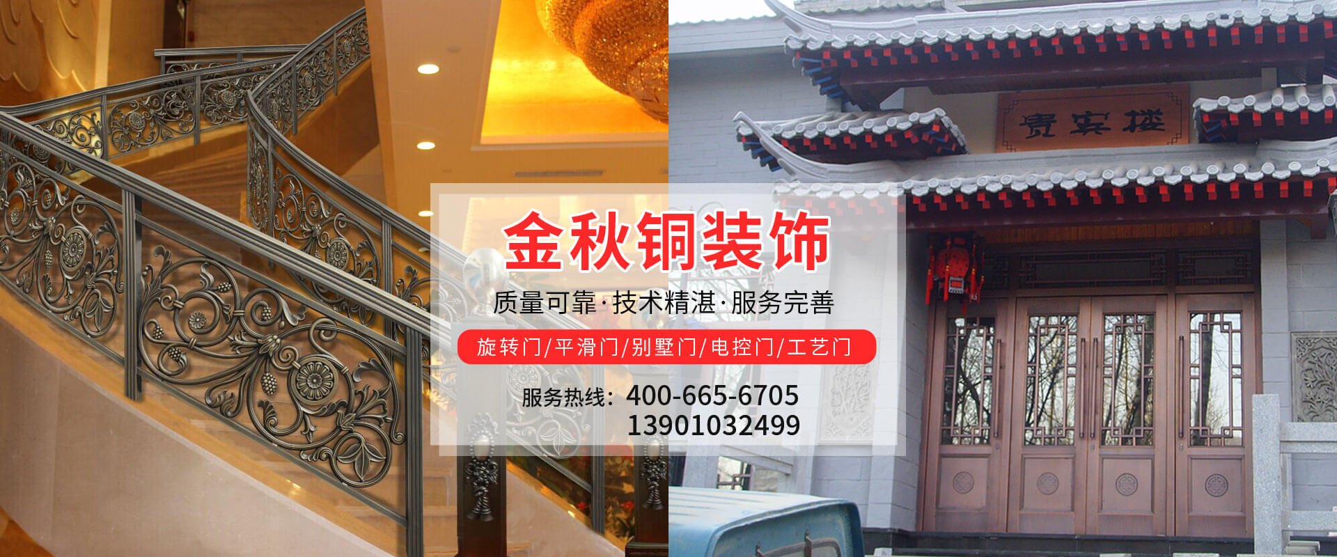 2016全國建筑材料科技創(chuàng)新獎獲獎項目:景泰藍現(xiàn)代生產(chǎn)應用工藝北京金秋銅裝飾材料有限公司位于北京市亦莊經(jīng)濟開發(fā)區(qū)中關村科技環(huán)保園區(qū),是專業(yè)生產(chǎn)銅裝飾材料及設計、開發(fā)、制造、施工、售后服務為一體的大型綜合企業(yè)。可承接建筑銅裝飾工程及五星級酒店、別墅、博物館、樓樘管所等高檔銅裝飾項目;生產(chǎn)各種規(guī)格的旋轉(zhuǎn)門、平滑門、別墅門、電控門、工藝門、旋轉(zhuǎn)護欄、屋頂銅飾防水瓦、浮雕壁畫、青銅古典家具及鑄造青銅器。1...